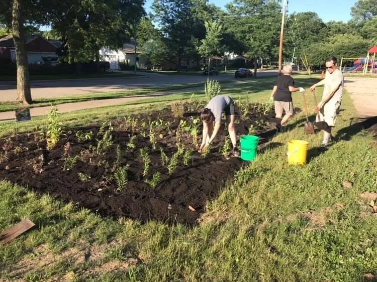 After receiving a grant from the Milwaukee County Parks, work began on the Pollinator Garden